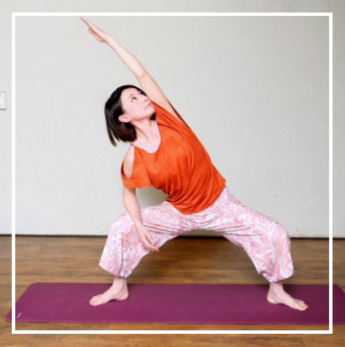 リラックス系のヨガ~アシュタンガヨガまで、幅広い指導内容で、ヨガの普及につとめている。自身はアシュタンガヨガを練習している。